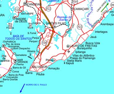 The State of Bahia is located in eastern Brazil, bathed by the Atlantic Ocean along the state's 932 kilometers of coastline, two bays, more than 100 islands and innumerable coves and river deltas.